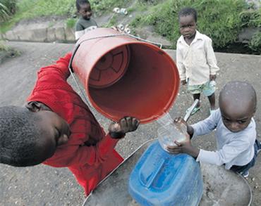 أطفال من زيمبابوي يحاولون الحصول على مياه. رويترز