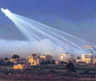 استخدمت قوات الاحتلال الإسرائيلي الفوسفور الأبيض ضد أهداف لحركة المقاومة الإسلامية «حماس» خلال عدوانها المتواصل حالياً على قطاع غزة. ويستخدم الفوسفور الأبيض لتدمير معدات العدو ومستودعات ذخائره أو الحد من مجال رؤيته، وتم استخدام هذه الذخائر خلال الحرب العالمية الثانية. ويعتبر من الاسلحة القذرة، بمعنى انه اذا اصاب شخصاً فإنه يبقى مشتعلا في جسمه الى ان يحترق الشخص حتى العظم، ولا تنطفئ النيران الى أن تتآكل الذخيرة نفسها. وتنتج الاصابة به عن تدمير للكلى والقلب والكبد، او فشل مركب لاجهزة الجسم في بعض الحالات. ويتميز برائحة تشبه رائحة الثوم، ويشتعل بمجرد تعرضه للاوكسجين أي انه ذاتي الاشتعال. ويتسبب في الوفاة عن طريق احراقه لانسجة الجسم او استنشاقه بواسطة الضحية او باختلاطه في مواد غذائية. وتنتج عن الاصابة به حروق ممتدة في الجلد، وتخلف ندوبا محاطة بالبثور، ويتسبب في جروح مركبة عميقة مختلفة الاحجام، ويستمر الفوسفور في الاحتراق والاحراق إلى ان يتم حرمانه من الاوكسجين. وتقتصر الحروق على المناطق المكشوفه من الجسم، والاجزاء العليا من الجسم والوجه. ويتسبب احتراق الفوسفور الابيض في هيجان شديد للرئتين، كما ان انتشاره في المناطق المغلقة مثل الغرف او الخيام من شأنه ان يتسبب في التهاب شديد للقصبة الهوائية والرئتين. ويتميز بخاصية الغوص والولوج السريع داخل الجسم بمجرد ان تتجمع جزيئاته تحت الجلد، وتتسبب مكوناته في تأخير شفاء الجروح.