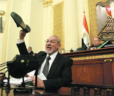 نائب إخواني رفع حذاءه مؤكداً توجيهه لإسرائيل. الإمارات اليوم