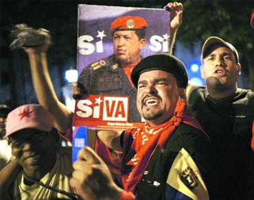 أنصار تشافيز يحتفلون بنتائج الاستفتاء. أ.ب