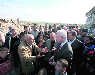 رئيس البرلمان الأوروبي يستمع إلى شكاوى المتضررين من العدوان الإسرائيلي على غزة. أ.ب.أ