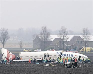 وذكر مسؤولون في المطار أن الطائرة، وهي من طراز بوينغ 737-800 كانت تقوم بالرحلة رقم 1951 القادمة من اسطنبول. وتحطمت عند اصطدامها بالأرض في حقل خارج محيط المطار وسط ضباب خفيف على بعد مسافة قصيرة من مطار سخيبول الذي يقع على بعد 20 كيلومترا جنوب غرب وسط امستردام.