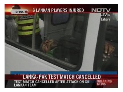 قتل خمسة شرطيين في هجوم شنه مسلحون ملثمون في لاهور شرق باكستان اليوم اسفر عن جرح عدد من لاعبي الفريق السريلانكي للكريكت، وفق ما أعلنت الشرطة الباكستانية. على الفور دان الرئيس السريلانكي ماهيندا راجاباكسي الهجوم معتبرا انه "اعتداء ارهابي جبان". وأعلن مسؤول أمني ان اجهزة الدفاع المدني الباكستاني فككت أيضا سيارتين مفخختين في لاهور مباشرة بعد الاعتداء.