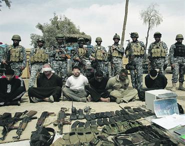 وأعلن العقيد علي اسماعيل، وهو قائد لواء في الجيش العراقي في محافظة ديالى، إنه تم القبض على الرجال في المنطقة الواقعة شمال شرقي بغداد، والتي لاتزال تشهد أعمال عنف حتى مع تراجع الهجمات في أنحاء العراق. وفي أعقاب القبض عليهم، عرضت قوات الأمن الرجال وهم معصوبو الأعين ويجلسون على الارض على الصحافيين، فيما وضعت أسلحة ومواد دعائية أمامهم.