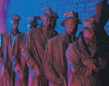 لوحة برونزية للنحات جورج سيغال عن أزمة 1929 بعنوان «طابور الخبز»، عرضت عند نصب فرانكلين روزفلت في العاصمة الأميركية واشنطن أخيراً، في إشارة تشابه مع الأزمة المالية العالمية الجارية.