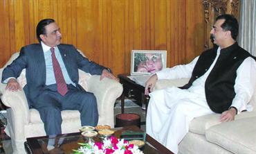 زرداري »يسار« أثار غضب جيلاني عندما رفض اتفاقاً يخلص باكستان من الفوضى. أرشيفية ــ أ.ب