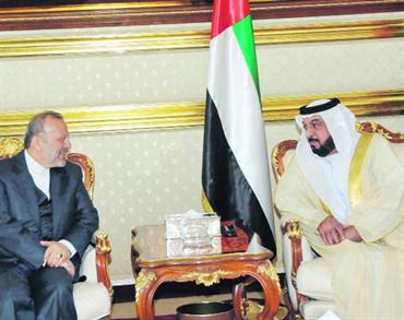 جاء ذلك خلال استقبال صاحب السموّ رئيس الدولة في قصر سموّه بالبطين أمس، وزير الخارجية الإيراني منوشهر متقي الذي قام بنقل الرسالة. وتتعلق الرسالة بالعلاقات الثنائية والقضايا ذات الاهتمام المشترك. وقد حمّل صاحب السموّ رئيس الدولة الوزير الإيراني تحياته إلى الرئيس الإيراني. كما التقى سموّ الشيخ عبدالله بن زايد آل نهيان وزير الخارجية، متقي في قصر الإمارات وبحث معه العلاقات الثنائية بين البلدين.