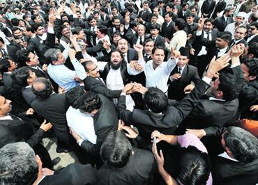 حشود من المحامين تحتفل في لاهور بقرار إعادة كبير القضاة إلى منصبه. أ.ف.ب