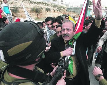 قوات الاحتلال تحاول منع مسيرة احتجاج ضد الجدار الفصل العنصري في بلدة المعصرة. أي.بي.أبه