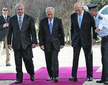 ودعا أولمرت خَلَفه إلى مواصلة عملية السلام، وقإل إنه «ما من سبيل أمام إسرائيل إلا العمل الدؤوب من أجل السلام». وأضاف «أنهي مهمتي، ولدي شعور بالفخر والرضا، لاتساورني مرارة أو غضب». وأوضح «شيء واحد هو الذي لم أستطع أن أفعله،حلم واحد لم نحققه، هو التوصل إلى سلام حقيقي مع جيراننا». ودعا بيريز نتنياهو إلى تبني رؤية حل دولتين لشعبين، كما تعهدت الحكومة السابقة في نوفمبر 2007 في اجتماعات السلام التي عقدت في أنابوليس في الولايات المتحدة .