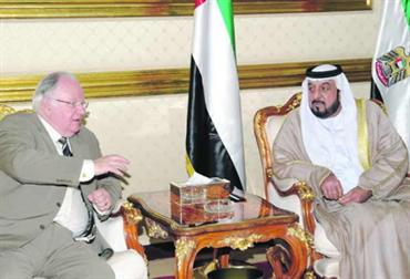 بحث صاحب السمو الشيخ خليفة بن زايد آل نهيان رئيس الدولة، بقصر سموه في البطين أمس، مع رئيس مجلس العموم البريطاني مايكل مارتن، علاقات التعاون والصداقة بين البلدين، ومجمل القضايا ذات الاهتمام المشترك. فيما أكد رئيس المجلس الوطني الاتحادي عبدالعزيز عبدالله الغرير، عقب مباحثات مع مارتن، اهمية أن يتبنى البرلمان البريطاني قضية الجزر الإماراتية الثلاث التي تحتلها إيران، مطالباً بدور بريطاني أكبر لاستعادتها.