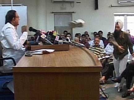 ألقى صحافي من السيخ حذاء على وزير الداخلية الهندي بالانيابان تشيدامبارام خلال مؤتمر صحفي اليوم بعد شعوره بالغضب من رد الوزير على سؤال بخصوص أعمال شغب اندلعت عام 1984 وقتل فيها مئات من السيخ.