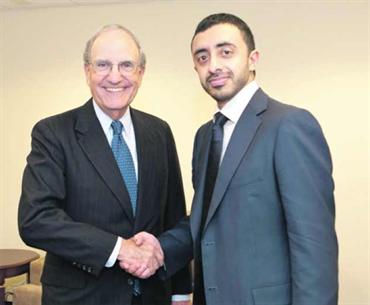 عبدالله بن زايد خلال لقائه ميتشل. وام
