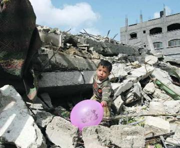 طفل يلهو على أنقاض منزله في جباليا شمال غزة. أ.ف.ب