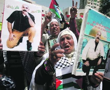 فلسطينيون يتظاهرون مطالبين بالإفراج عن أسراهم. إي.بي.إيه