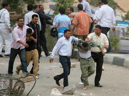 ومع قيام المتظاهرين بتدمير مركز مراقبة للشرطة على مشارف الحي أطلق ضابط النار في الهواء. وأفاد صحافي ان إثنين على الأقل من المتظاهرين أصيبا بجروح، فيما جابت سيارة إسعاف محيط الحي الذي يسكنه حوالى 35 ألف من جامعي القمامة أو "الزبالين" حيث يقومون بفرز النفايات وتربية حوالى 60 ألف خنزير.