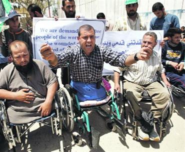 تظاهر عشرات الأطفال المعاقين بفعل الحرب الإسرائيلية على قطاع غزة، أمس، قبالة بوابة معبر رفح البري مع مصر، للمطالبة بفتح المعبر أمام سفرهم للعلاج في الخارج.