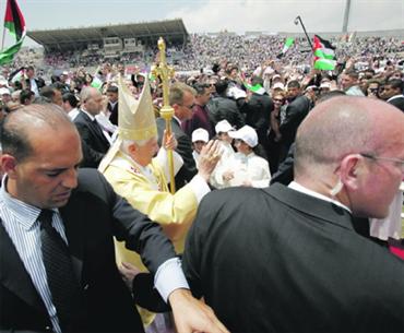 أكد البابا بنديكتوس السادس عشر، في اليوم الثالث لزيارته إلى الأردن، عن تضامنه مع مسيحيي الشرق الأوسط، ودعاهم إلى أن يكونوا أوفياء لجذورهم في منطقة يسودها الاضطراب، أجبرت عديدين منهم على الهجرة. وقال خلال عظته أمس في قداسه الأول، في استاد عمان الدولي في الهواء الطلق، أمام نحو 50 ألف شخص من الأردن ومن دول الجوار، وخصوصاً سورية ولبنان والعراق، « طال انتظاري لهذه الفرصة، لأقف أمامكم، لأشجعكم على المثابرة في الإيمان والأمل والحب».