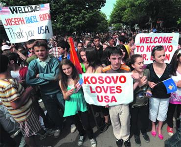 وانتقل بايدن في مروحية الى مقر قوة حلف شمال الاطلسي في كوسوفو (كفور) في ضواحي بريشتينا قبل ان يتوجه في سيارة الى مقر برلمان كوسوفو في قلب العاصمة وسط ترحيب جماهيري يردد «مرحبا» و«شـكرا للولايات المتحدة» و«كوسوفو تحب الولايات المتحدة».