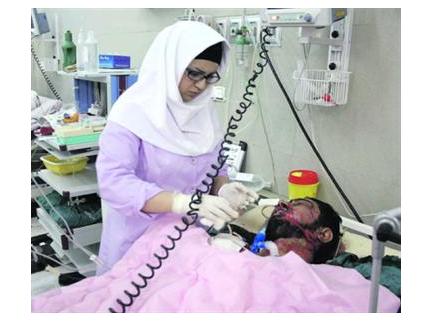 أحد ضحايا الاعتداء على المسجد الإيراني يتلقى العلاج. رويترز