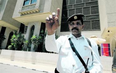 شرطي مصري أمام مبنى الجامعة الأميركية في القاهرة. أ.ب