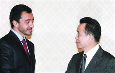 عبدالله بن زايد خلال زيارته سيؤول أمس. أي بي أيه