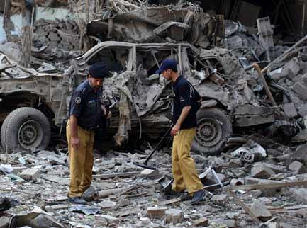 أعلنت الشرطة الباكستانية ان حصيلة الهجوم بسيارة مفخخة، الذي استهدف مساء أمس فندقاً كبيراً في بيشاور شمال غرب باكستان، ارتفعت إلى 15 قتيلا إثر العثور على أربع جثث تحت الانقاض اليوم. وبين القتلى موظفان في الأمم المتحدة.