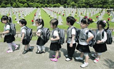 في إطار التصعيد ضد تهديدات كوريا الشمالية، لم توفر شقيقتها الجنوبية حتى الأطفال الذين حشدتهم في زيارات لمقابر أجدادهم في الحرب بين الكوريتين عام ،1953 في إطار تربيتهم على روح الثأر والانتقام.