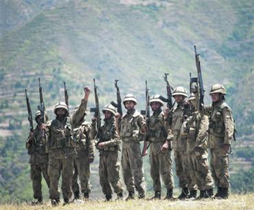 جنود باكستانيون في حالة انتشاء بعد تحقيق نجاحات في وادي سوات. أ.ب