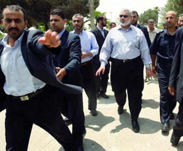 هنية يتفقد العمل في معبر رفح الذي فتحته السلطات المصرية جزئياً أمس. رويترز