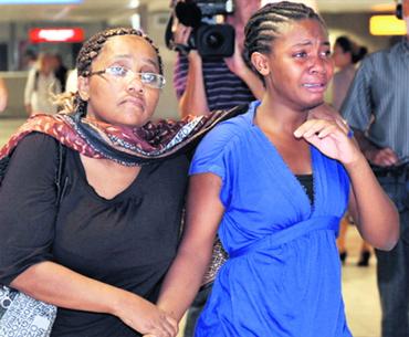 قريبة أحد الركاب في مطار مرسيليا تبكي بعد تلقيها نبأ سقوط الطائرة. أ.ب