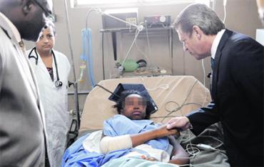 وزير فرنسي يزور الطفلة بهية بكري الناجية الوحيدة من تحطم الطائرة. أ.ف.ب
