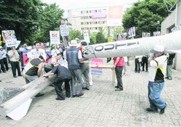 من احتجاجات كورية جنوبية على إطلاق بيونغ يانغ صواريخها. أ.ب