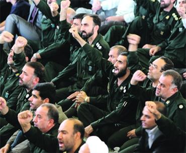 عناصر من الحرس الثوري الإيراني تهتف ضد أميركا وإسرائيل. أ.ف.ب