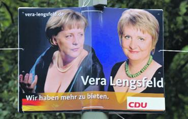 والمفاجأة هذه المرة حملة المستشارة الألمانية أنغيلا ميركل التي بدأت بلافتات أثارت فضول واستغراب الناخب الألماني. ظهرت ميركل (55 عاما)، على إحدى اللوحات الإعلانية للحزب المسيحي الديمقراطي المحافظ، بلباس مثير لم يألف الألمان رؤيتها وهي ترتدي مثله. وكتب على الإعلان الذي تظهر فيه ميركل مع إحدى المرشحات للحزبين عبارة «لدينا المزيد لإعطائكم». وتبدو المستشارة بفستان سهرة أزرق يكشف جزءاً من جسمها. في حين ظهرت المرشحة فيرا لينسفيلد بجانبها، والتي شغلت منصب رئيسة ألمانيا الشرقية سابقا، بلباس مشابه لكنه باللون الأسود، وأقل جاذبية من فستان المستشارة. وتحظى العملية الانتخابية بتغطية إعلامية ضخمة من مختلف وسائل الإعلام الألمانية.
