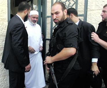 وفي غزة، نفى رئيس الحكومة الفلسطينية المقالة إسماعيل هنية امس ، تقارير إسرائيلية عن دخول جماعات إسلامية مسلحة لقطاع غزة، معتبراً أن الهدف من هذه التقارير جلب تحالف دولي ضد القطاع. وقال هنية في خطبة الجمعة بأحد مساجد شمال قطاع غزة، لا يوجد على أرض قطاع غزة أي تنظيمات أو مجموعات متشددة، كما تدعي إسرائيل. واعتبر هنية أن هذه التقارير «تهدف للتحريض وجلب تحالف دولي ضد غزة، وتعكس مأزقاً إسرائيلياً في التعامل مع القطاع، محذراً من الانجرار وراء مثل هذه التقارير. ونفى رئيس الحكومة المقالة اتخاذ حكومته توجهاً إسلامياً متشدداً لأسلمة المجتمع، قائلاً إن الحركة الإسلامية في أرض فلسطين حركة وسطية تبتعد عن التكفير ومصطلحات الردة، وهي حركة ذات فكر وسطي قائمة على وسطية الإسلام وأهدافها محددة وواضحة.