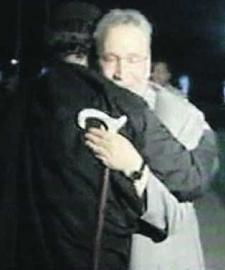 عانق الزعيم الليبي معمر القذافي عبدالباسط المقرحي، المدان في حادث تفجير طائرة بان أميركان فوق لوكربي، وتعهد بتعاون أوثق مع بريطانيا رداً على إطلاق سراح المقرحي الذي أكد أنه كان ضحية خطأ قضائي، في الوقت الذي دانت فيه لندن وواشنطن ما حظي به من «استقبال الأبطال» في وطنه.