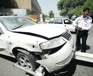 سيارة تضررت جراء تفجير في بغداد. أ.ب