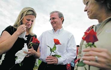 أميركية تنتحب وآخرون يحملون الزهور أمام جثمان كينيدي. غيتي