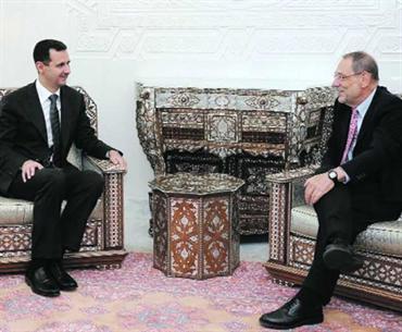 أكد الرئيس السوري بشار الأسد أمس، خلال استقباله الممثل الأعلى للسياسة الخارجية في الاتحاد الاوروبي خافيير سولانا، ان لسورية مصلحة مباشرة في امن واستقرار العراق. وافادت وكالة الأنباء السورية الرسمية ان لقاء الأسد وسولانا تطرق الى الأوضاع في العراق وأهمية تحقيق المصالحة الوطنية، لما في ذلك من انعكاسات ايجابية على ارساء الاستقرار والأمن للشعب العراقي. ونقلت الوكالة عن الأسد تأكيده ان « لسورية مصلحة مباشرة في أمن واستقرار العراق».