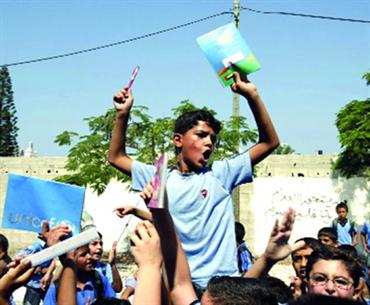 تلاميذ يتظاهرون في غزة مطالبين بتوفير مستلزمات المدارس. أ.ف.ب