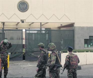 جنود يمنيّون يحرسون السفارة الأميركية. إي.بي.إيه