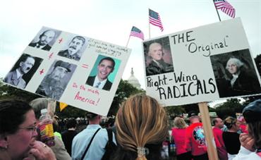 تظاهر عشرات الآلاف من الأشخاص الذين جاءوا من جميع أنحاء الولايات المتحدة اول من أمس في واشنطن لإدانة سياسة الإنفاق التي يتبعها الرئيس باراك اوباما، خصوصاً مشروعه لإصلاح النظام الصحي.