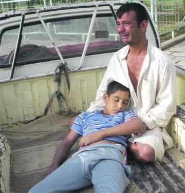 قريب الطفل الذي قتل في بعقوبة يبكيه. أ.ف.ب
