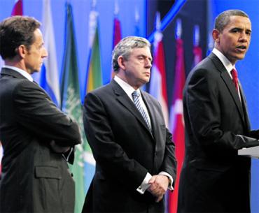أوباما وساركوزي وبراون يعتبرون الإعلان الإيراني تصعيداً نووياً. رويترز