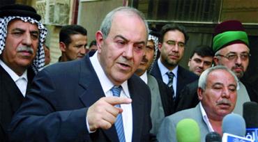 إياد علاوي يتحدث بعد زيارته السيستاني في النجف. رويترز