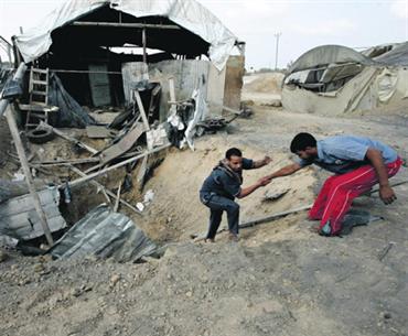 أحد الأنفاق التي دمرتها إسرائيل في رفح. أ.ف.ب