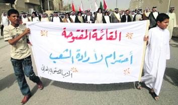 ورفع المتظاهرون الذين أشرف على تجمعهم الحزب الدستوري، بزعامة وزير الداخلية جواد البولاني، أعلاماً عراقية ولافتات كتب على إحداها «القائمة المغلقة ترسيخ للطائفية والعنصرية وخيانة للشعب والوطن».