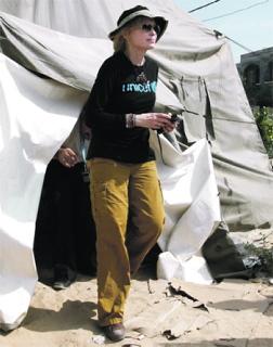 الممثلة الأميركية ميا فارو تزور أحد مخيمات اللاجئين في بيت لاهيا شمال قطاع غزة. أ.ب