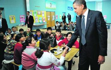 وقال أحد الحضور في المدرسة إن أوباما دخل إحدى القاعات، وصافح التلاميذ الموجودين الذين بدت عليهم ملامح الدهشة والفرحة في آن واحد. وشجع الرئيس على القراءة، لأنها، كما قال، تفتح آفاقاً واسعة.